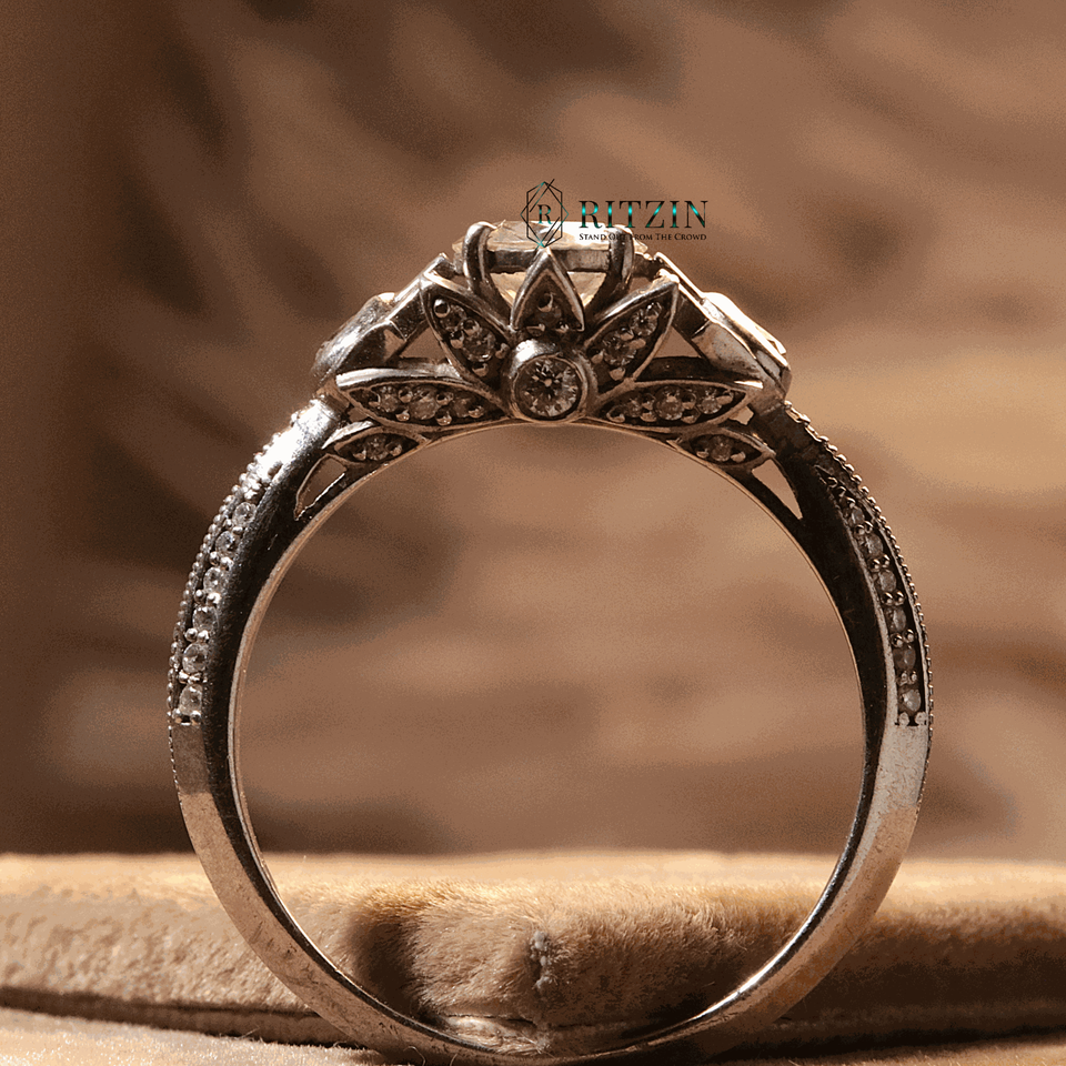 Anillo de compromiso de estilo Art Deco de diamante de corte redondo para mujer