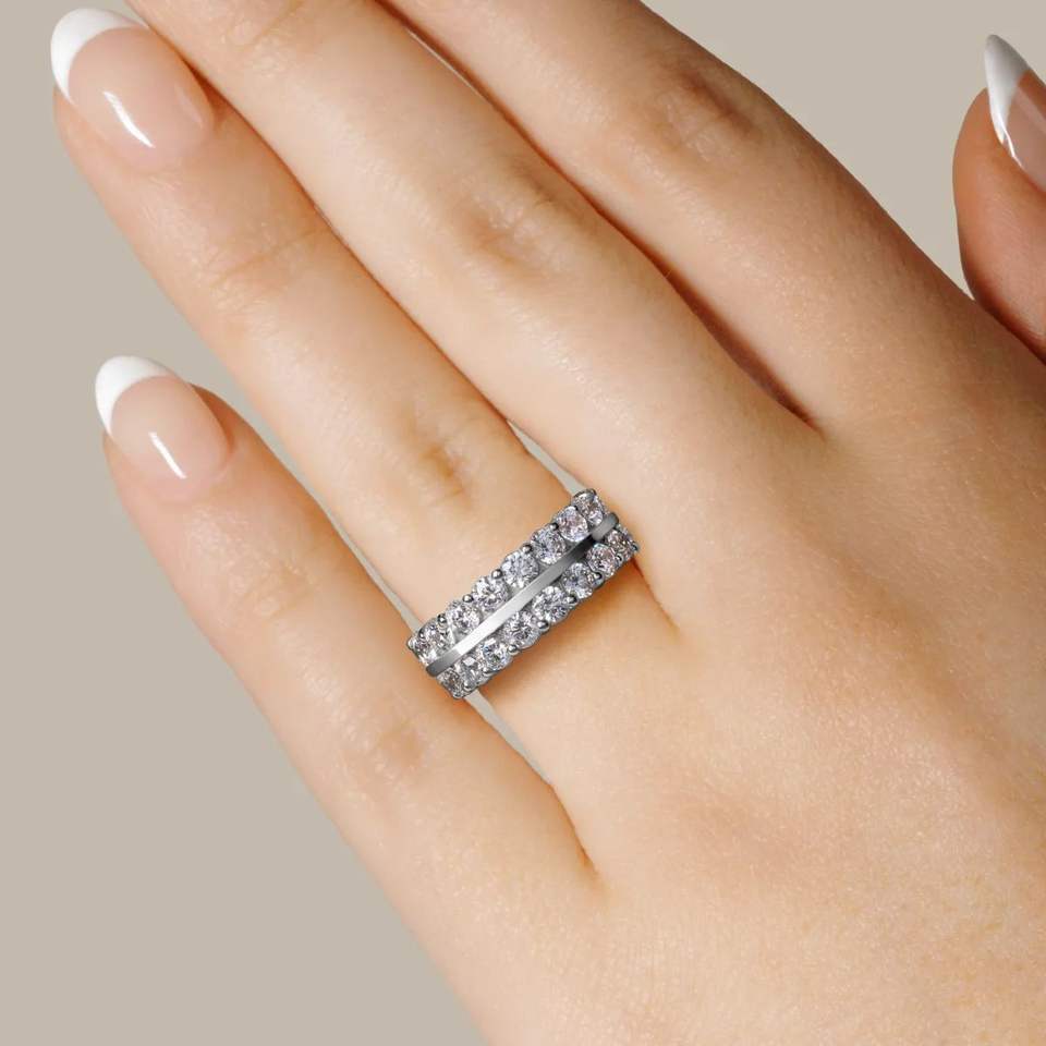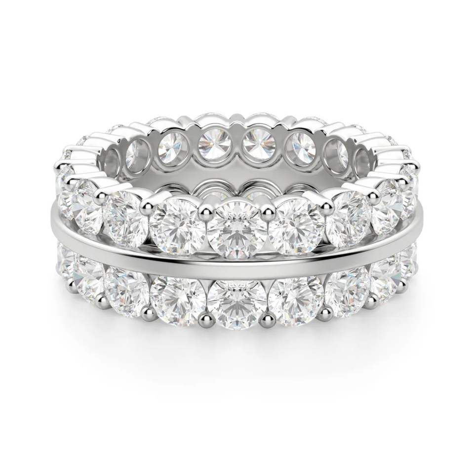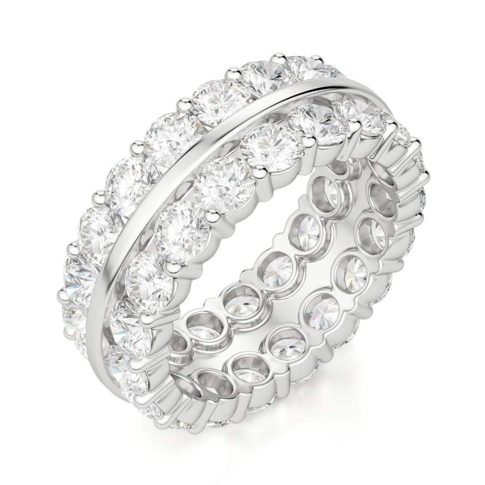 Conjunto de canal de diamante de corte redondo Alianza de boda de eternidad completa para mujer