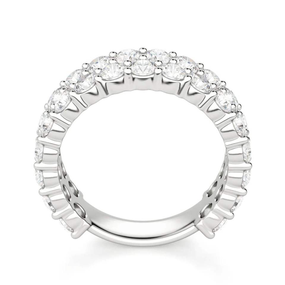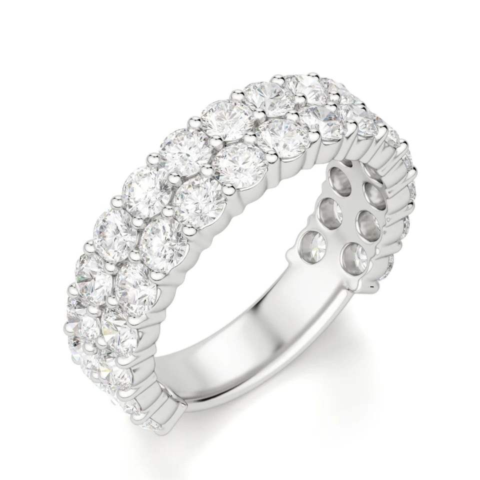 Round Cut Diamond Pave Set Two Row Semi Eternity Wedding Band para mujer