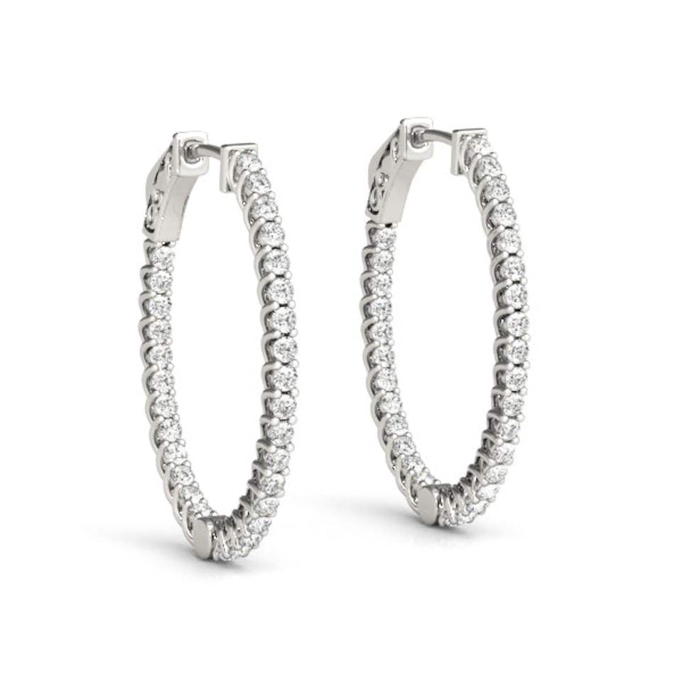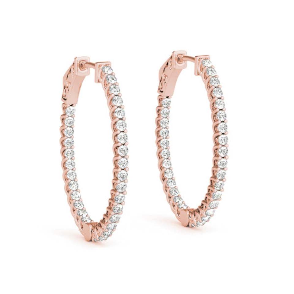 Pendiente de aro con cierre a presión de diamante de corte redondo para mujer