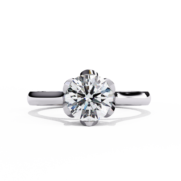 Anillo de Compromiso Solitario con Diamante Cultivado en Laboratorio de Corte Redondo en un Clásico Engaste de Oro de 6 Puntas, Estilo Lujoso