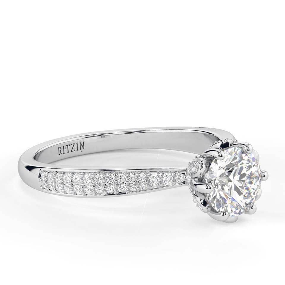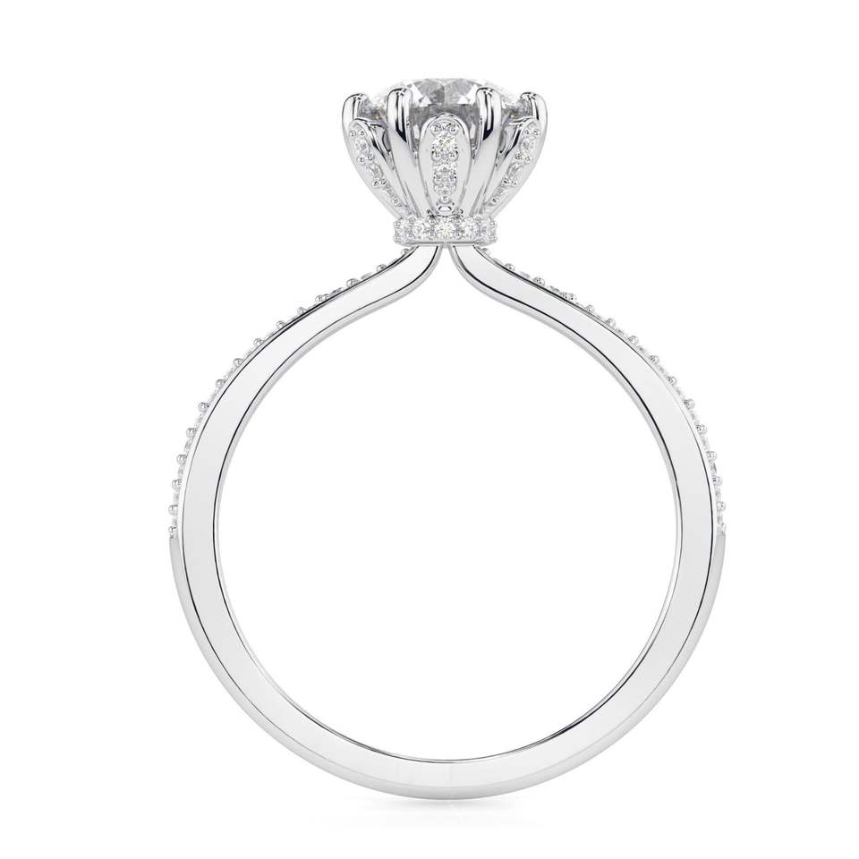 Anillo de Compromiso Solitario Único con Diamante Cultivado en Laboratorio de Corte Redondo y Detalles en Oro Rosa para Mujer