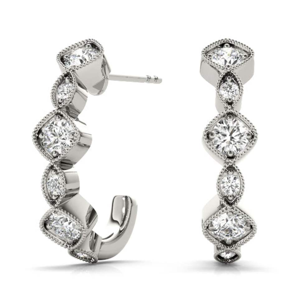Diamante de corte redondo con bisel Set J-Hoop Pendiente para mujer