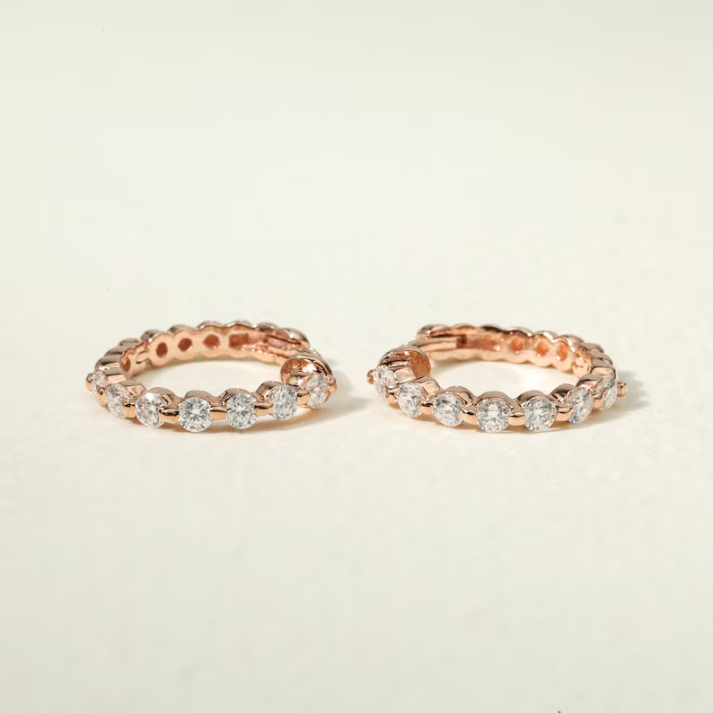 Pendientes de Aro con Diamantes de Laboratorio de Corte Redondo, Oro Sólido de 14K, Pendientes de Aro Minimalistas con Diamantes Eternos, Regalo de Boda