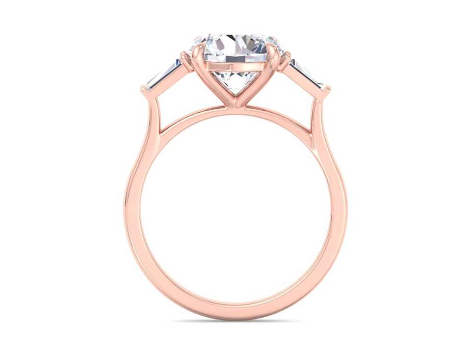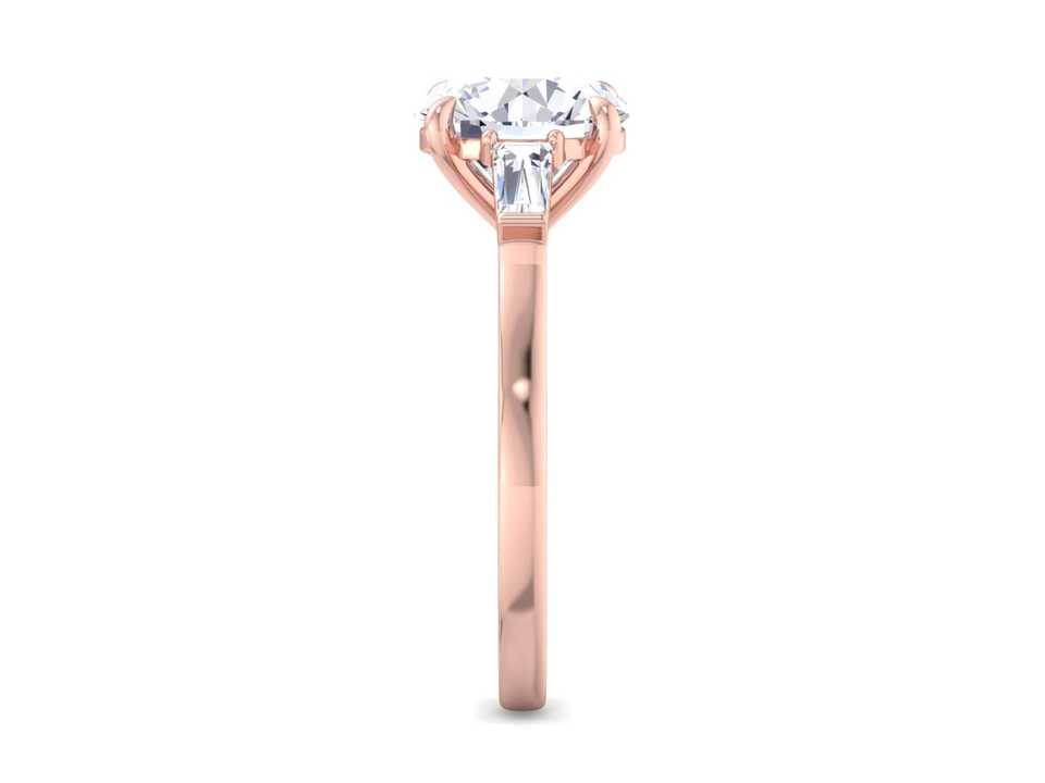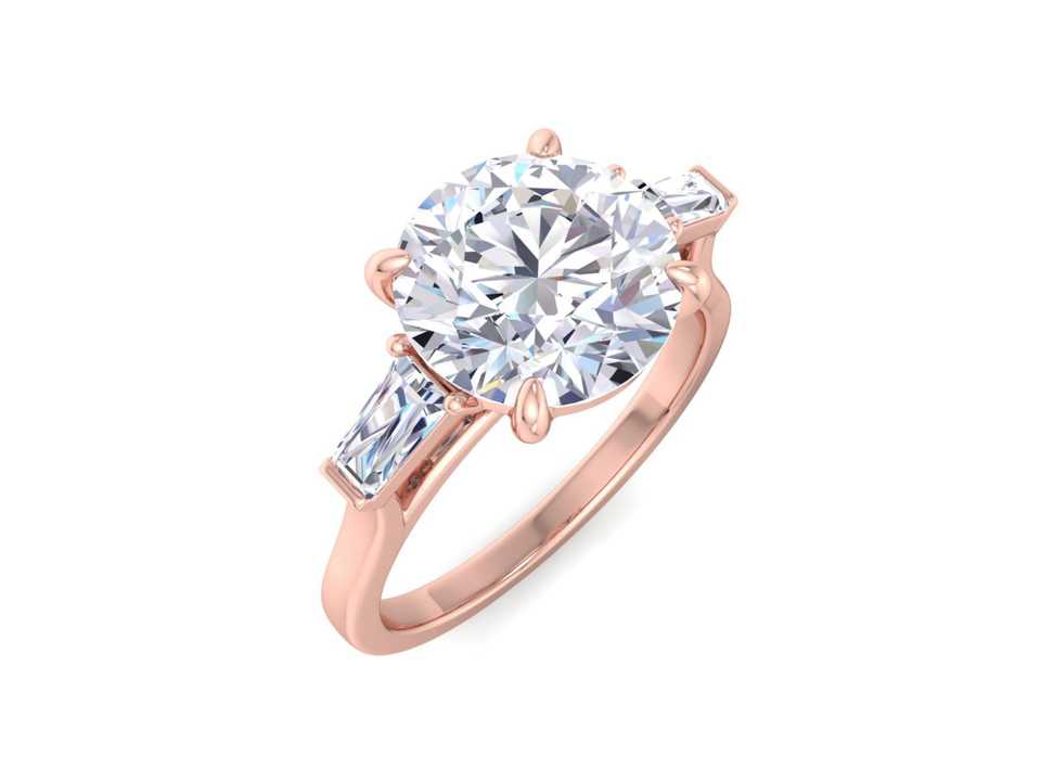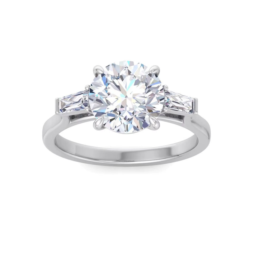 Anillo de Compromiso con Tres Piedras de Diamante de Laboratorio con Corte Redondo y Piedras Laterales en Forma de Baguette, Anillo de Novia Clásico