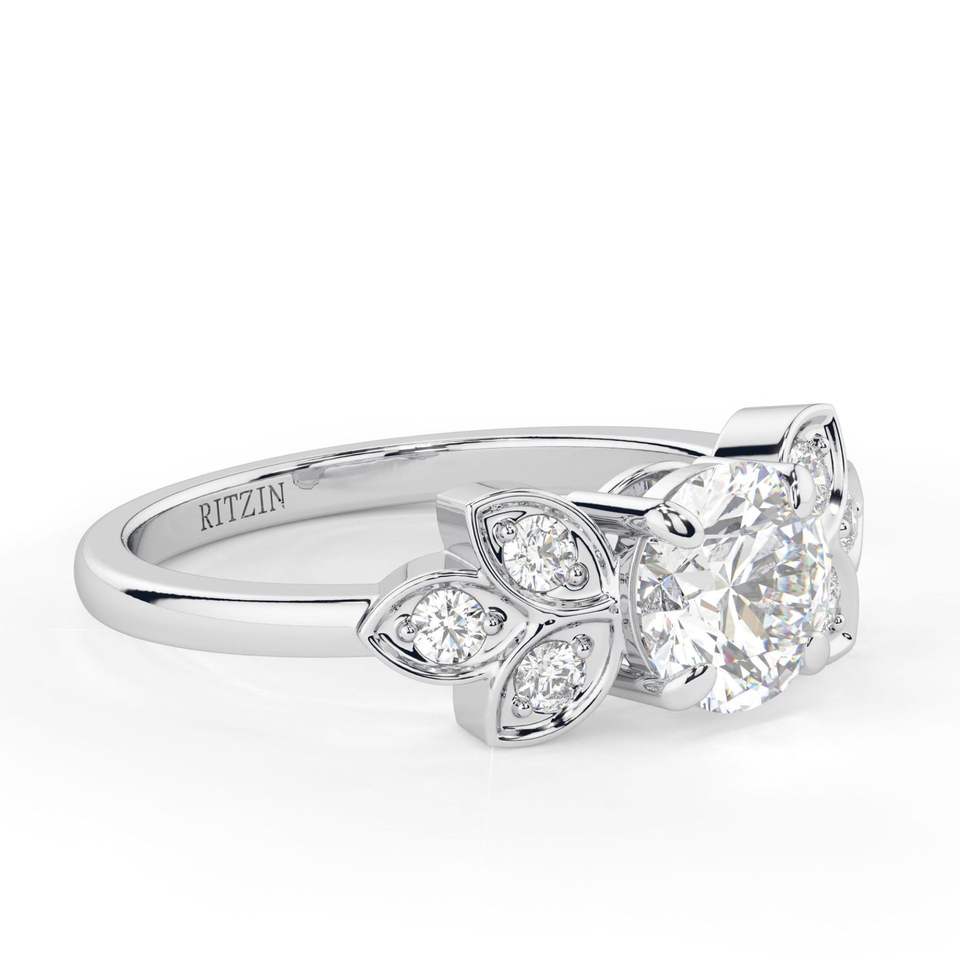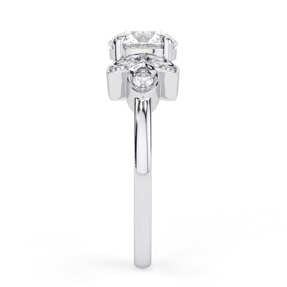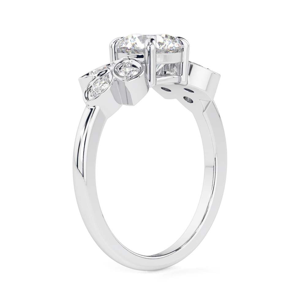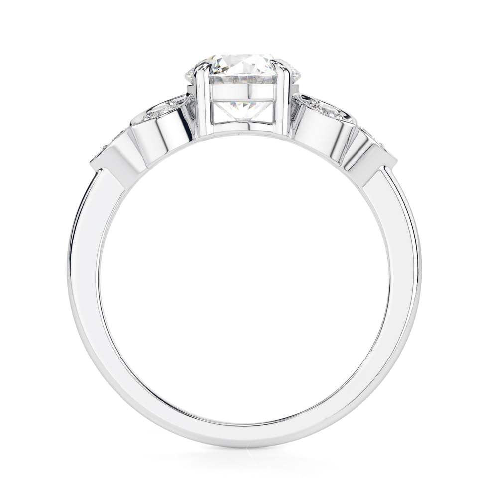 Anillo de Compromiso de Oro Blanco con 7 Diamantes Cultivados en Laboratorio de Corte Redondo, Estilo Elegante para Mujer