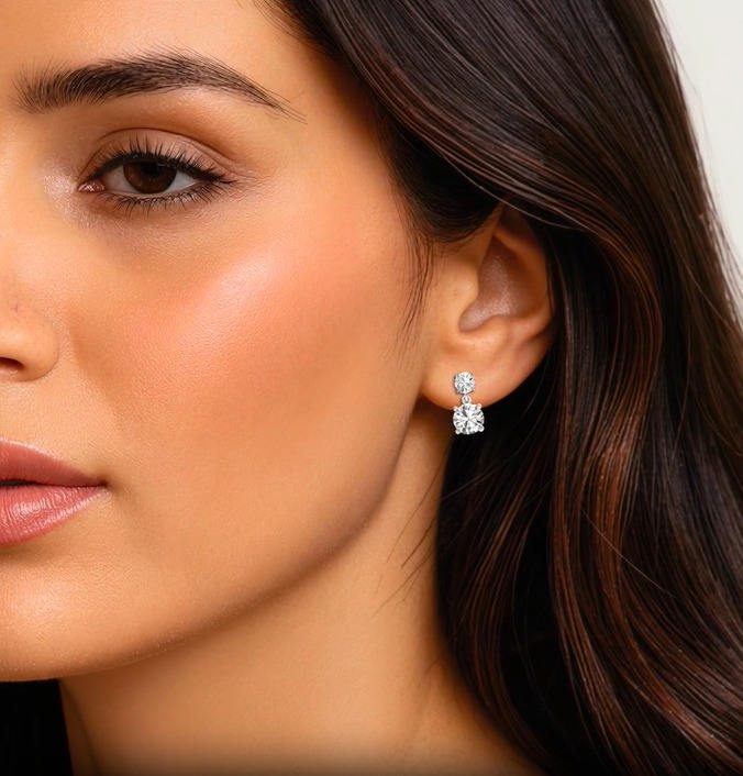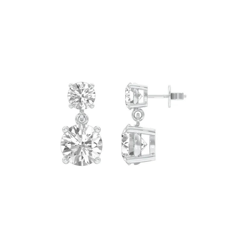 Pendientes colgantes de diamante cultivado en laboratorio de corte redondo, oro macizo de 14K, moissanita, joyería nupcial, pendientes colgantes de doble piedra.