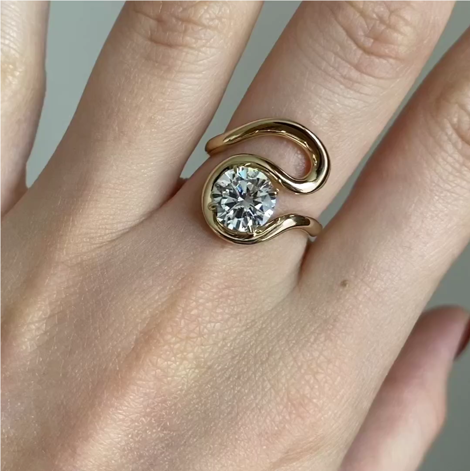Anillo de Compromiso CVD Solitario de Corte Redondo, Conjunto de Bisel de Boda de Diamante de Laboratorio Redondo de 2 quilates, Anillo de Brida de Oro Amarillo