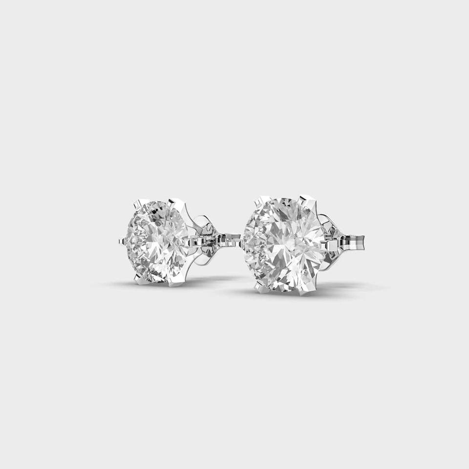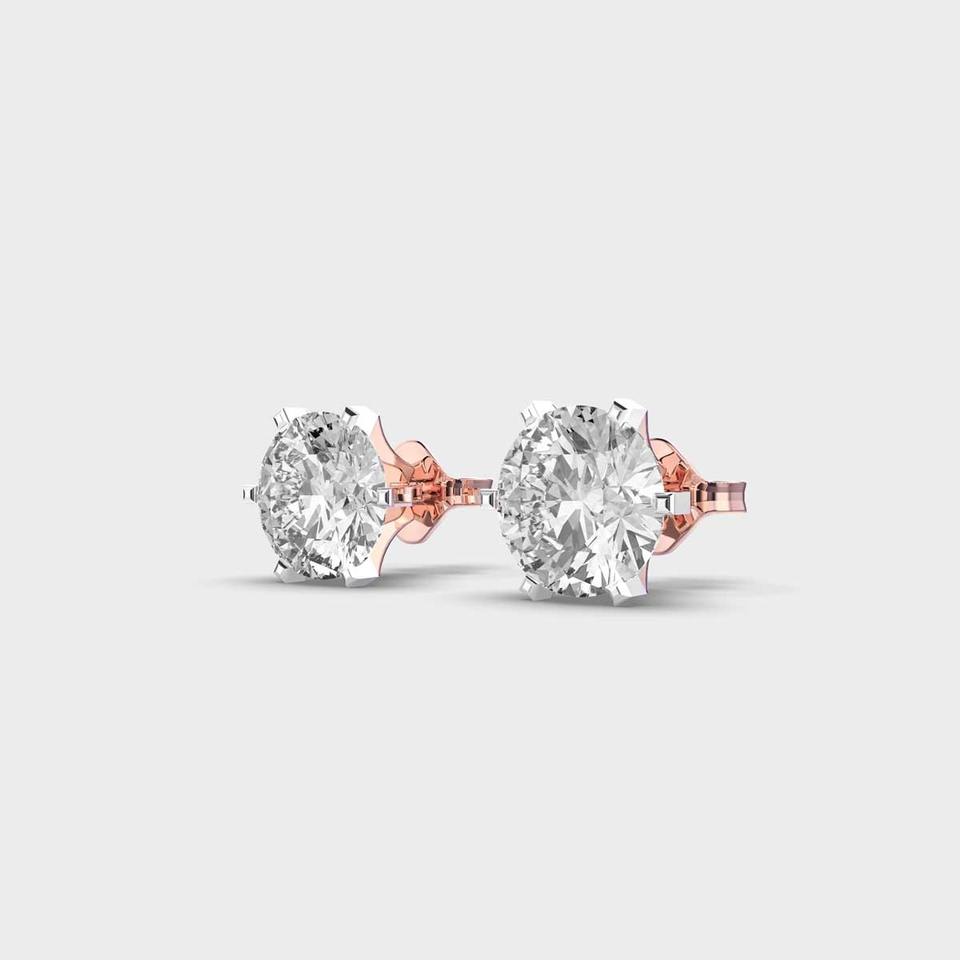 Pendientes de diamante cultivado en laboratorio, corte redondo, en oro blanco/rosa/amarillo de 18 quilates con engaste de seis puntas.