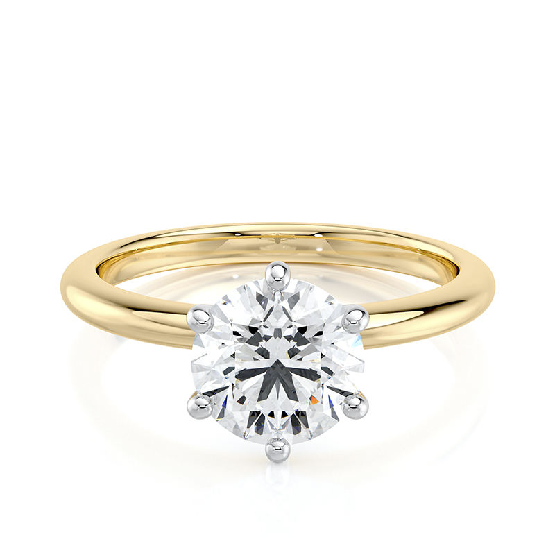 Anillo de Compromiso Solitario con Diamante Cultivado en Laboratorio de Corte Redondo, Oro Amarillo de 10 Quilates, Certificado IGI, 6 Puntas, Joyería para Fiesta de Bodas, Regalo para Ella