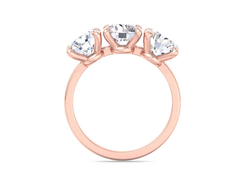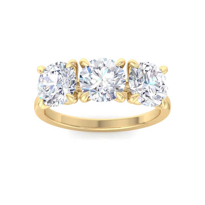 Anillo de Compromiso de Tres Piedras con Diamante Cultivado en Laboratorio de Corte Redondo, Chapado en Oro de 18k y Rodio, Certificado IGI, Anillo de Aniversario de Bodas para Mujer