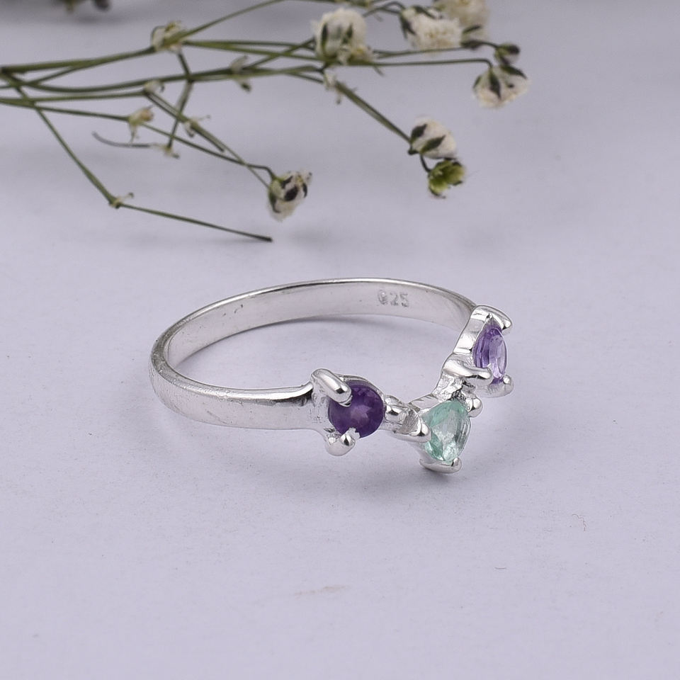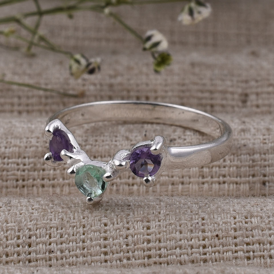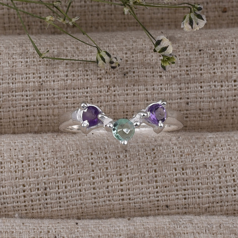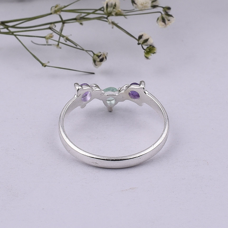 Nombre del producto:Anillo de piedras preciosas redondas de amatista natural y calcedonia aguamarina