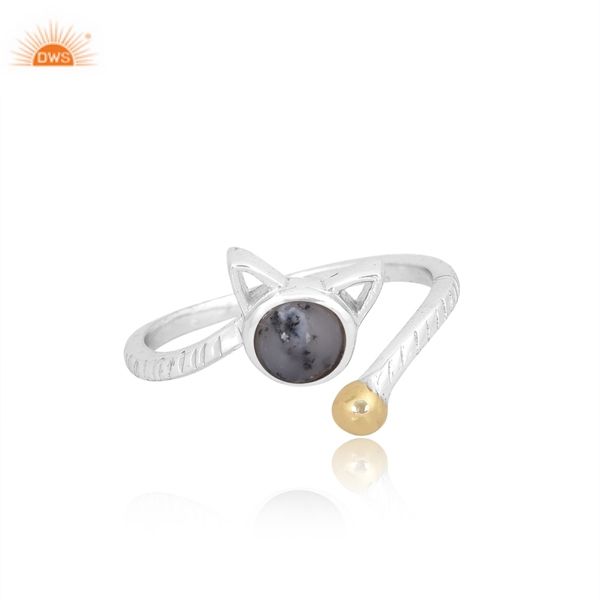 Anillo de Plata de Ley 925 con Diseño de Dendrita Redonda con Patrón de Revestimiento y Vástago Ajustable, Fabricante de Joyería Personalizada