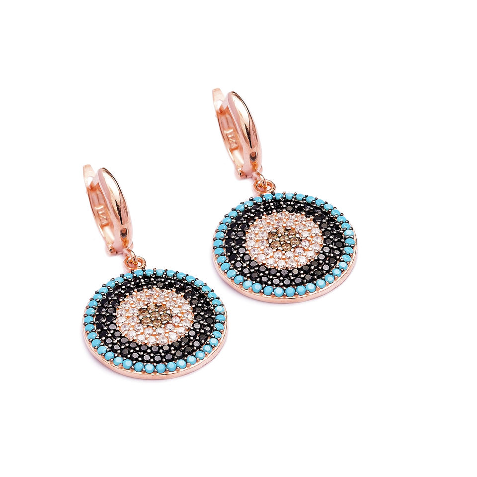 Pendientes colgantes de ojo turco de diseño Redondo, amuleto de la suerte, piedra turquesa, venta al por mayor turca, joyería de plata de ley 925