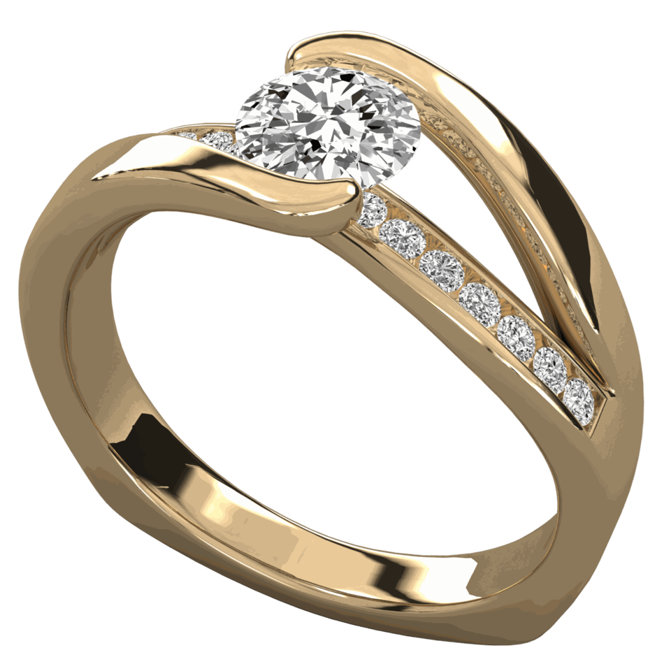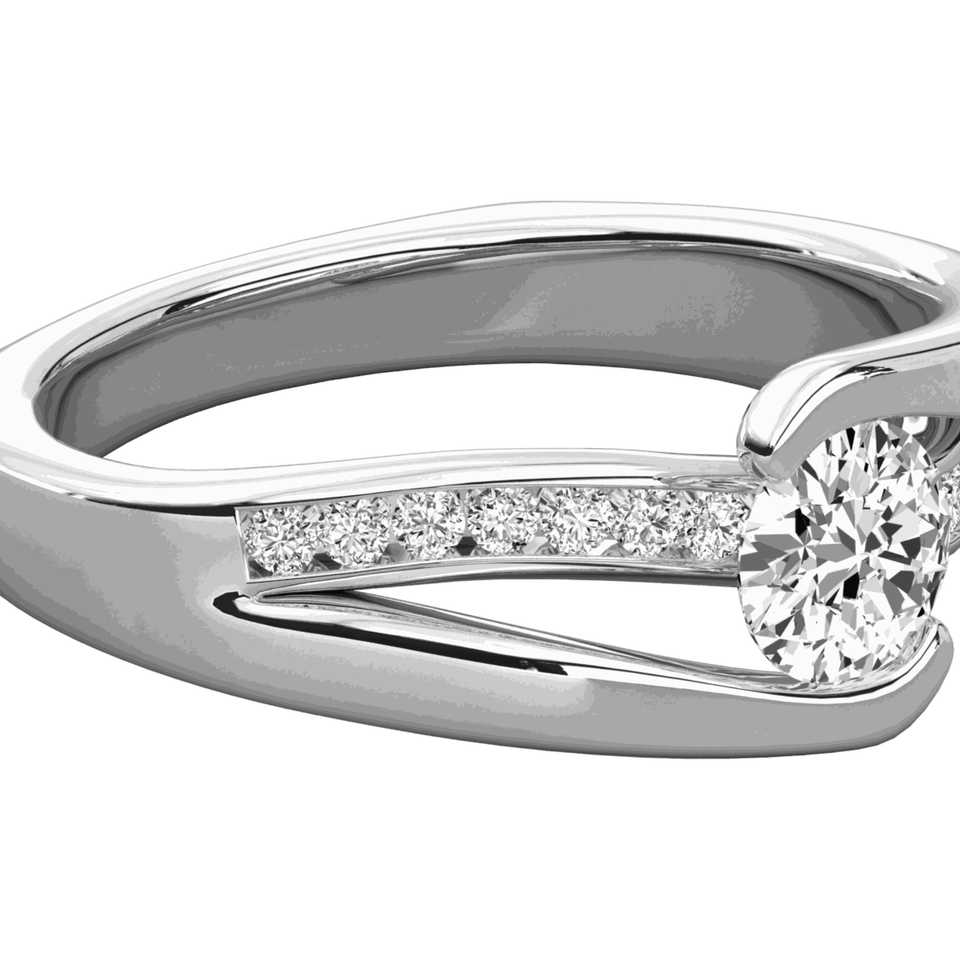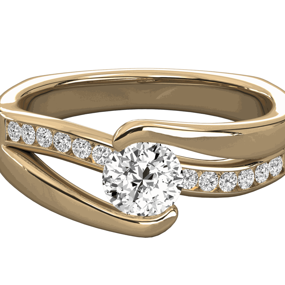 Anillo Solitario con Engaste de Puntas y Diamante Redondo