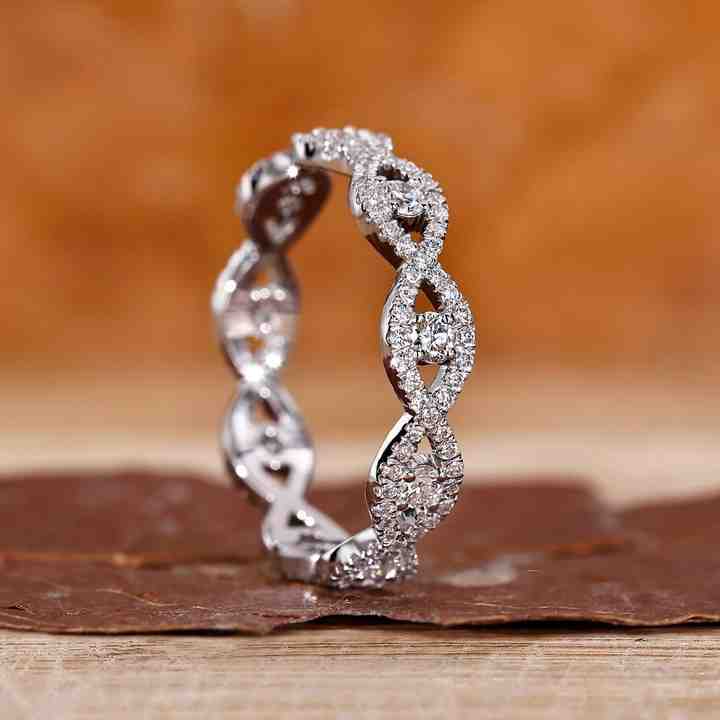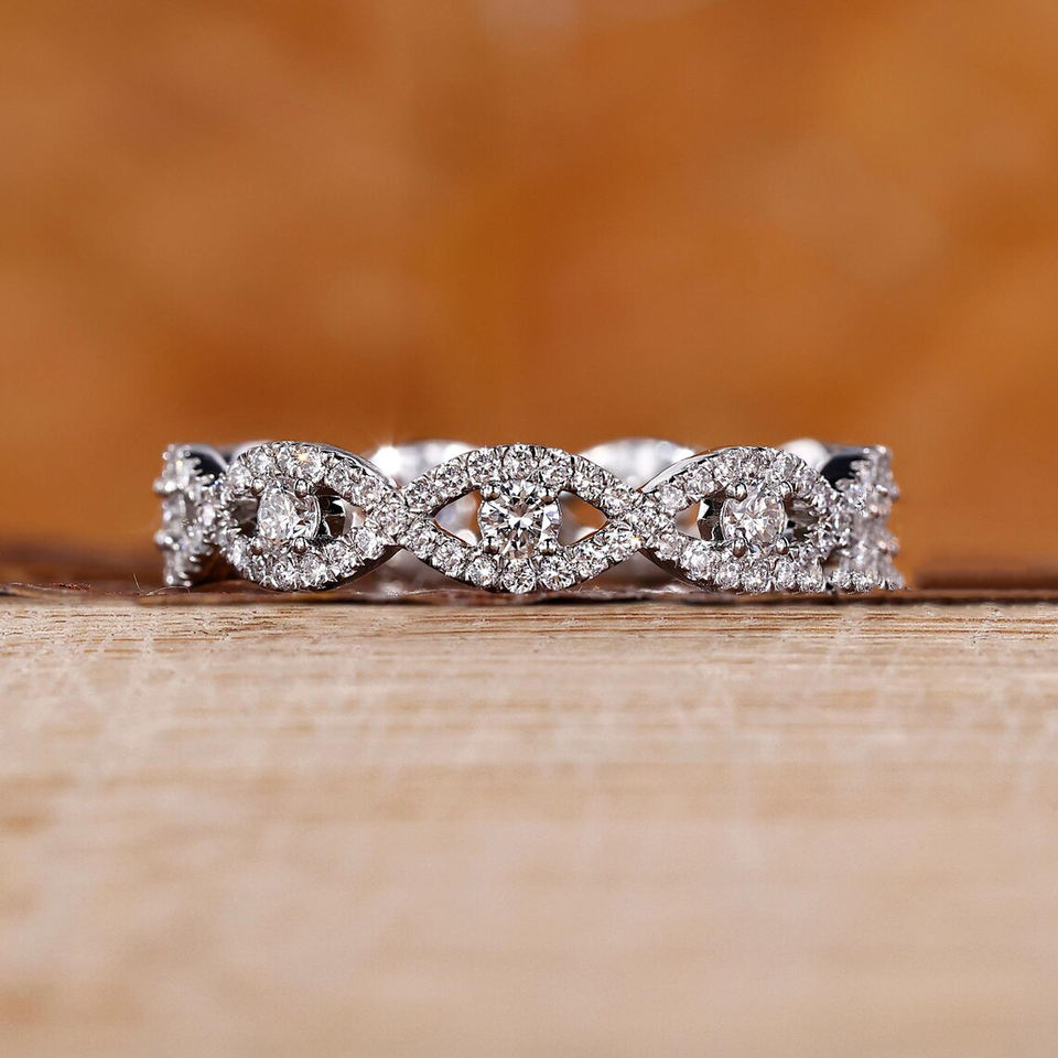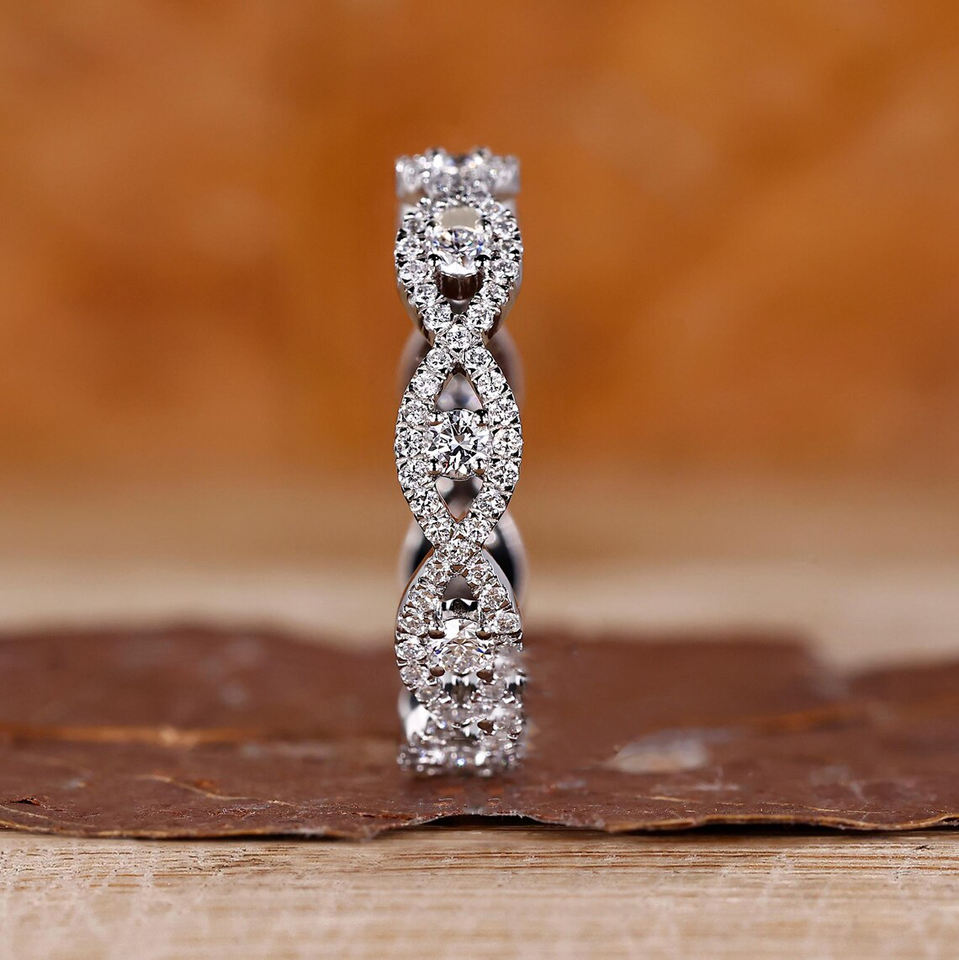 Anillo de Eternidad Completo con Diamantes en Forma de D, Trenzado, Chapado en Oro sobre Plata 925, Anillo Infinito Apilable