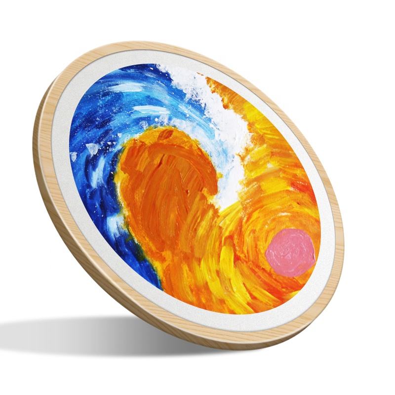 Marco de Fotos Digital con Pantalla Táctil LCD Redonda de 23.6 Pulgadas, Marco de Madera con Pantalla Completa de Aleación de Aluminio, Reproducción de Video en Bucle con Wi-Fi
