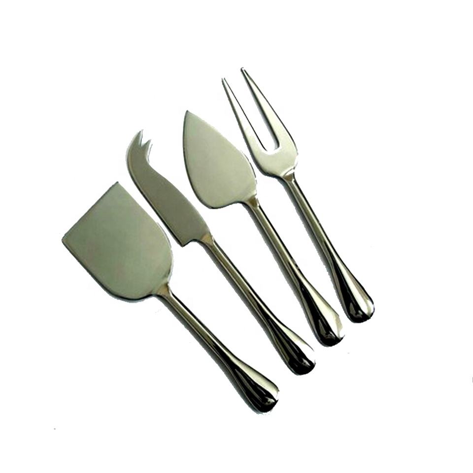 Juego de rebanadoras de queso con mango redondo, juego de rebanadoras de queso con mango cónico pulido plateado de acero inoxidable, juego de esparcidor de queso novedoso