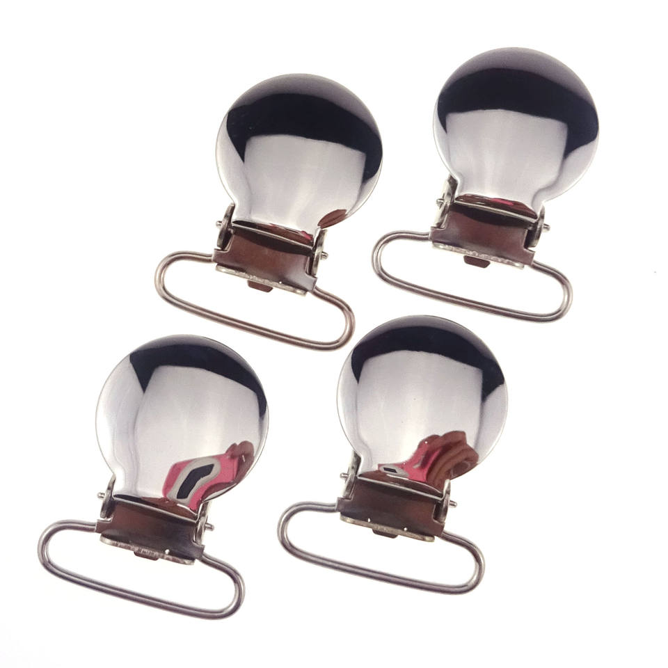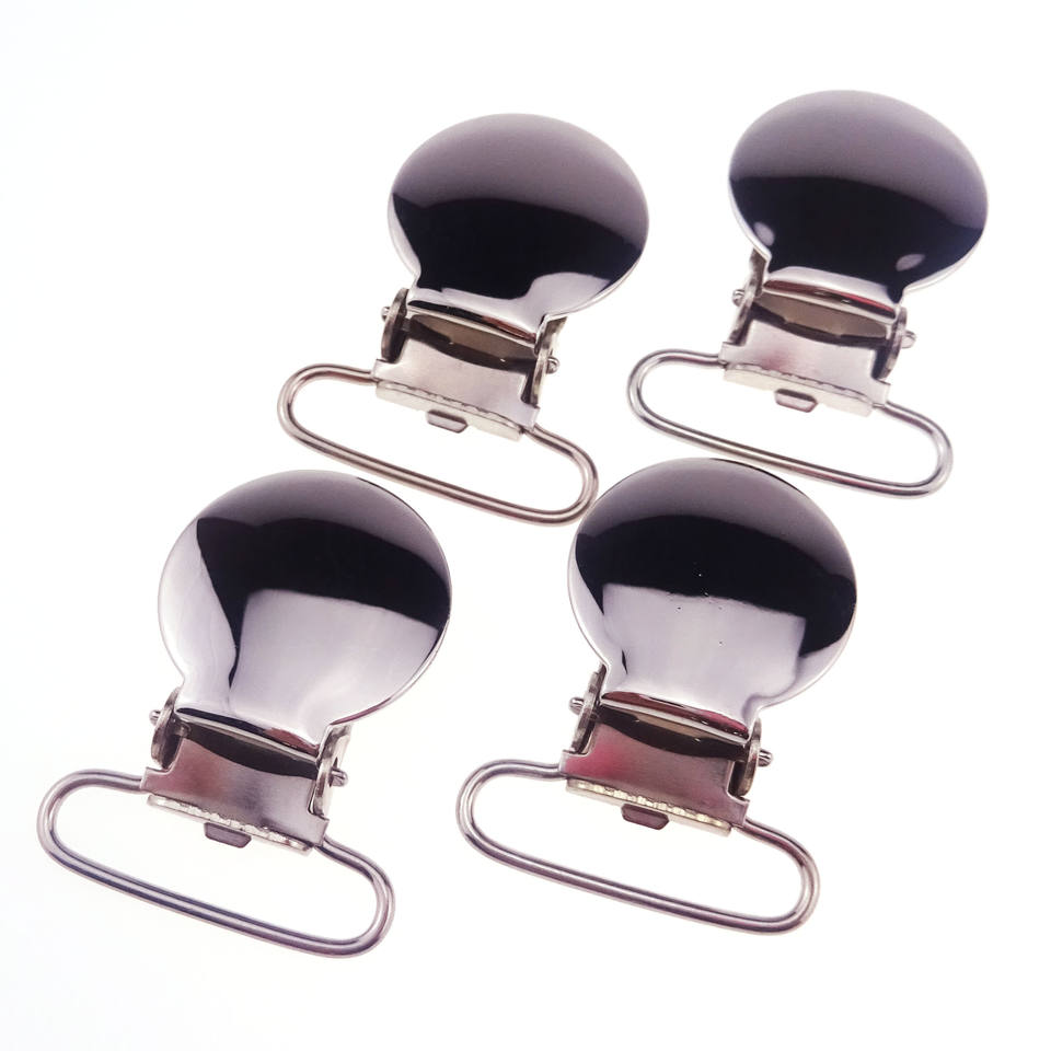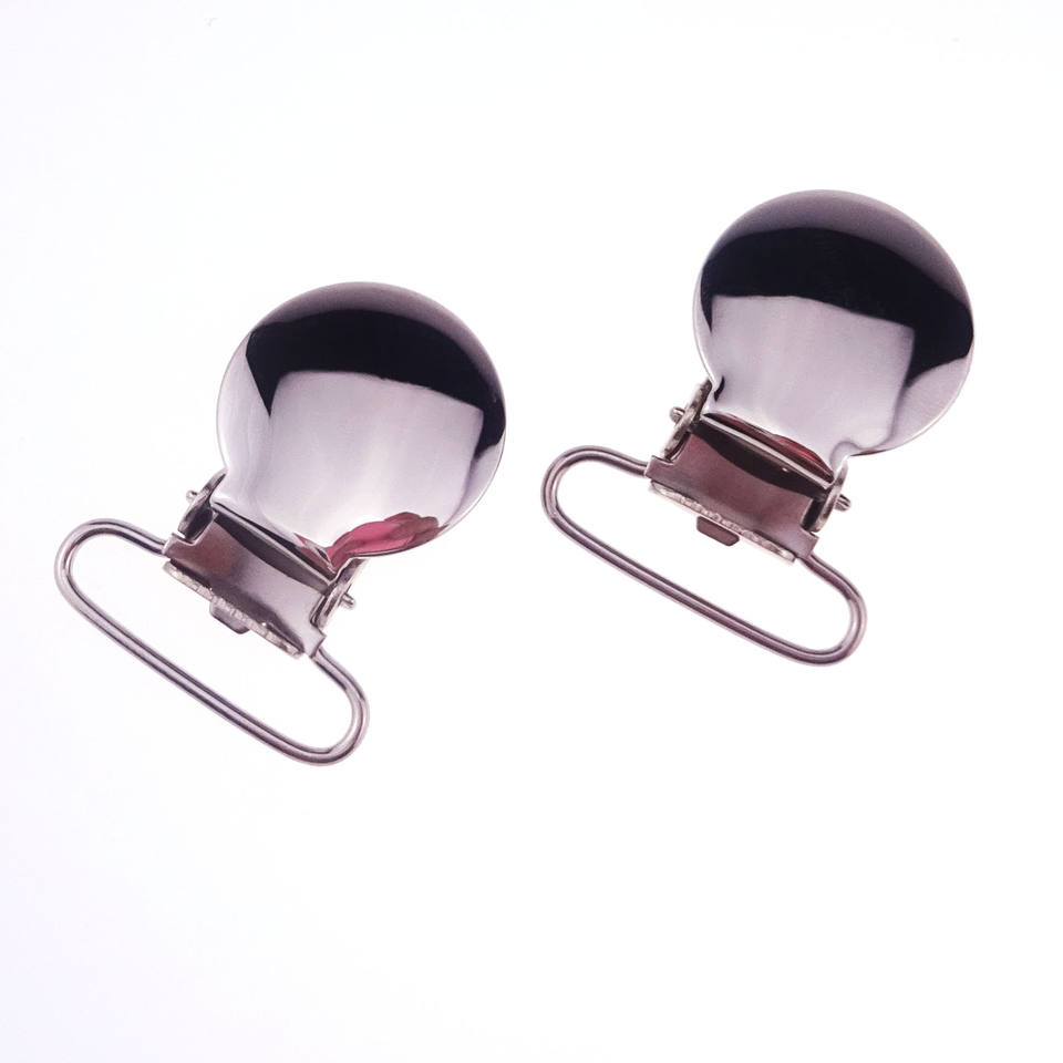 Tirantes de cara redonda para chupete, soporte de correa de Metal, plata, hebilla de pico de pato, Clips de tirantes