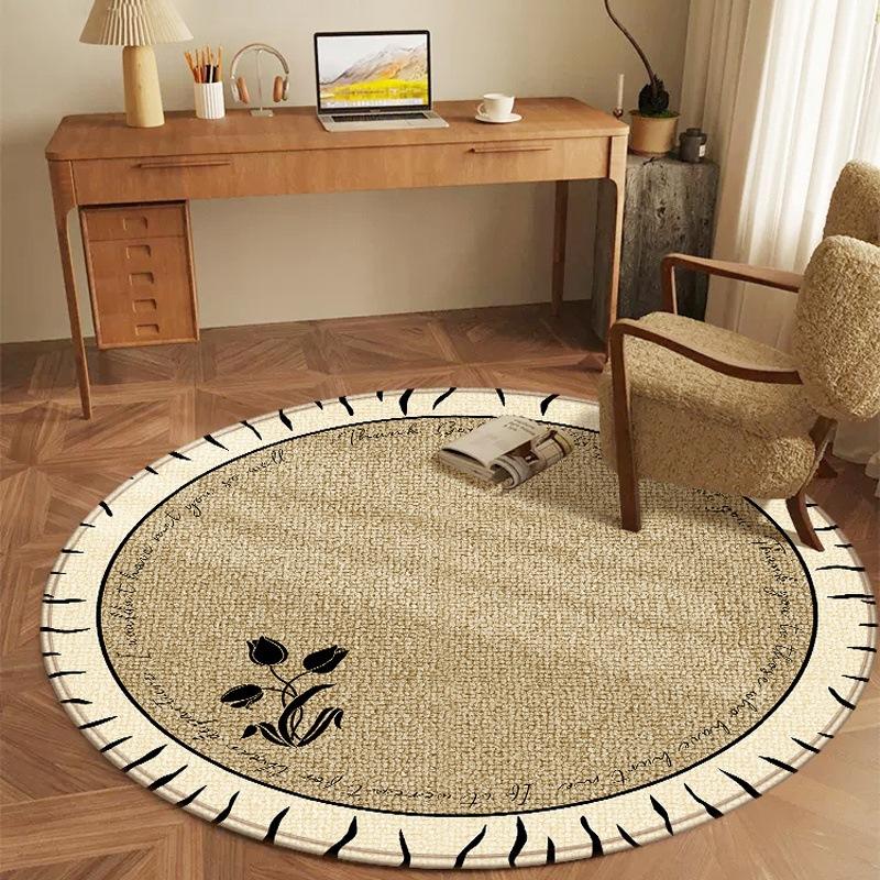 Alfombra Redonda con Diseño Floral, de Fibra de Poliéster Crema, Antideslizante, para Sala de Estar, Dormitorio, Silla o Piso