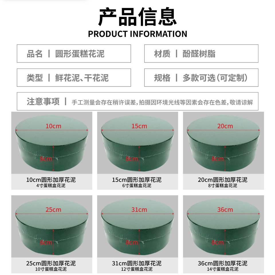 Bloques de espuma floral redondos para arreglos de pasteles y flores, base de resina fenólica reutilizable, suministros de decoración para bodas