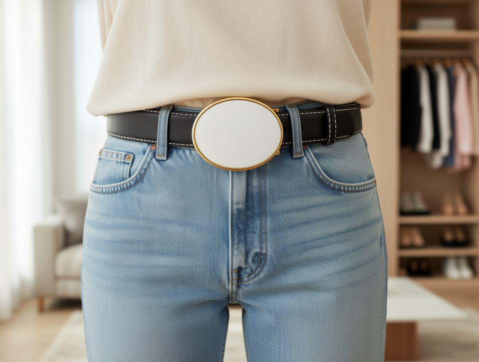 Hebilla Redonda Dorada con Placa Blanca Grande de 4.5cm para Accesorios de Cinturón