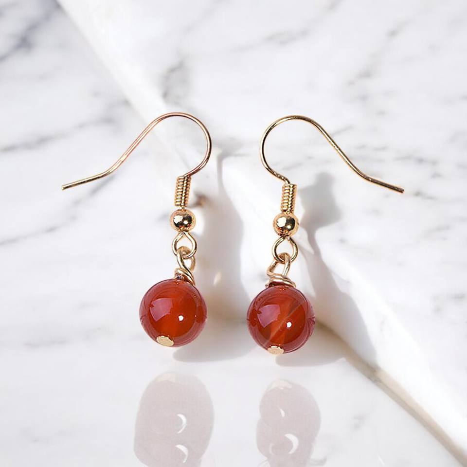 Pendientes colgantes de piedras preciosas cornalina curativas redondas-Pendientes hechos a mano de plata 925