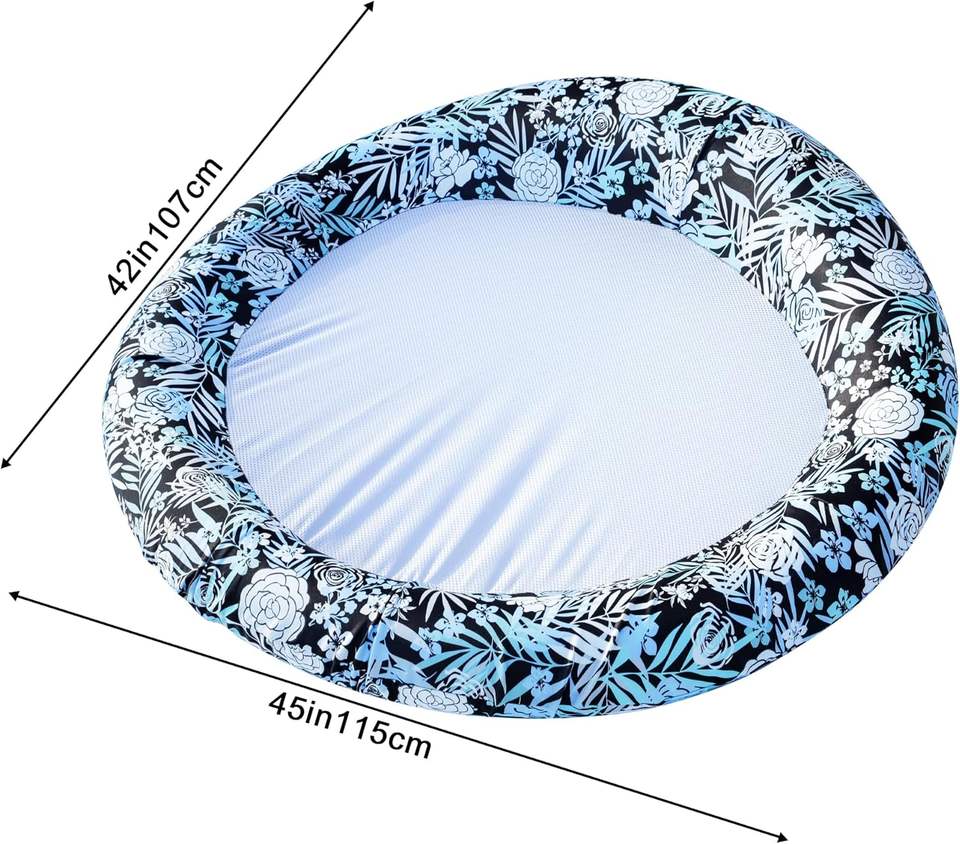 Flotador Inflable Redondo de PVC para Adultos con Diseño de Hojas Blancas y Negras