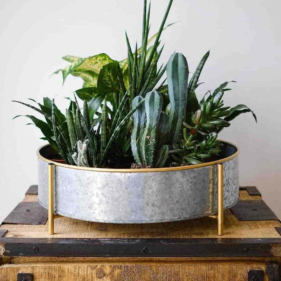 Macetas decorativas hechas a mano de hierro de Metal más vendidas, jarrón, macetas redondas de hierro con soportes para hoteles y restaurantes en casa