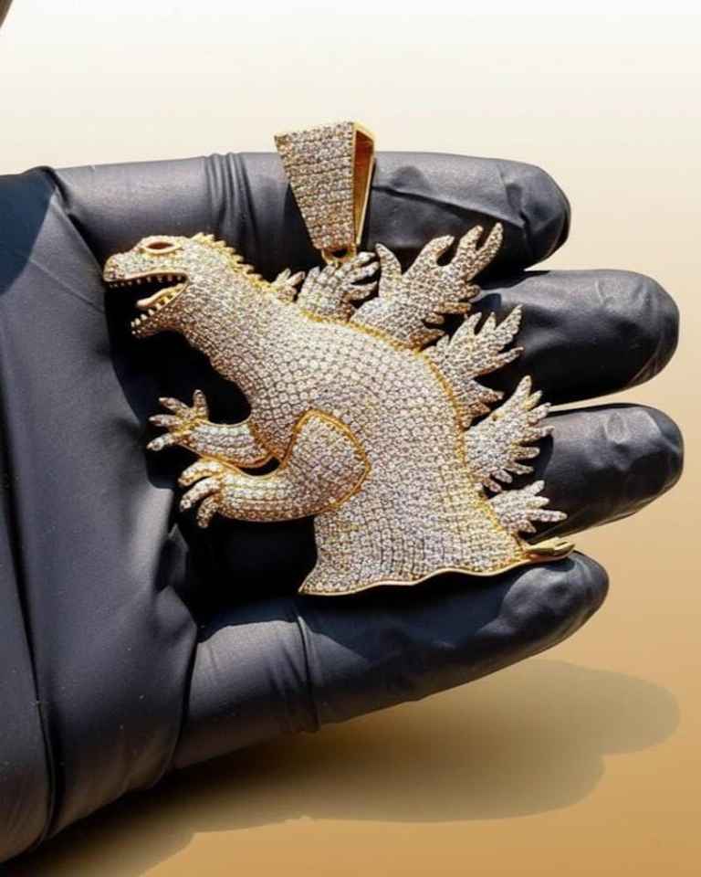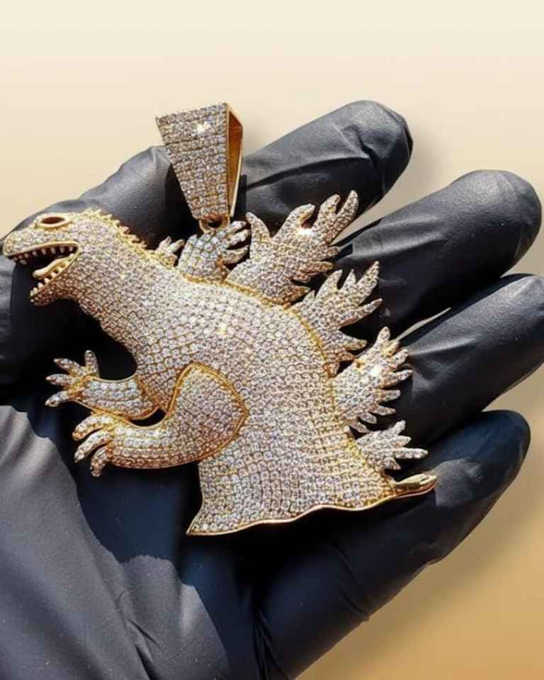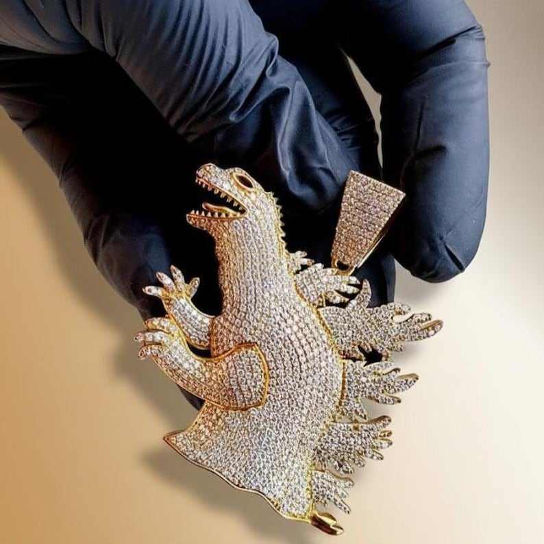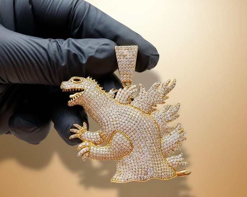 Colgante de Lujo para Hombre de Plata de Ley 925 con Moissanita Diamante Creada en Laboratorio Dvars, Diseño de Dinosaurio Godzilla, Estilo Hip Hop, para Amantes de los Animales, GCI