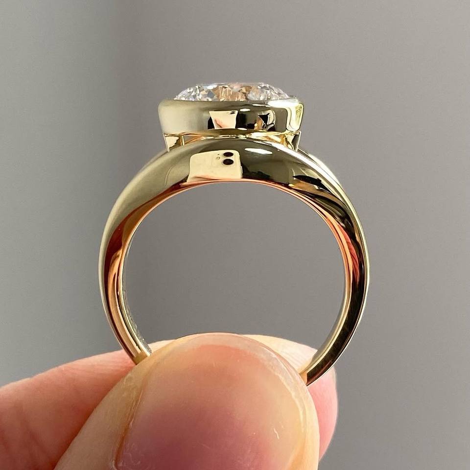 Anillo de Compromiso Minimalista con Diamante Cultivado en Laboratorio, Engaste de Bisel, Oro 10K/14K/18K, 5 CT E/VVS2, Joyería Fina
