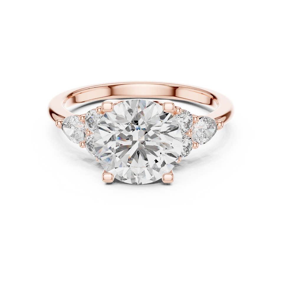 Anillo de compromiso de tres piedras con diamante cultivado en laboratorio en oro rosa – Anillo de diamantes nupcial clásico con piedras laterales para mujer