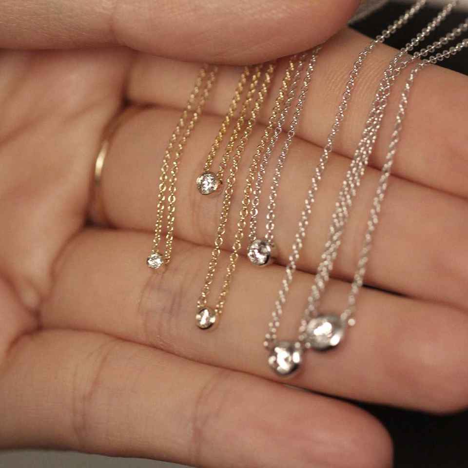 Colgante y Cadena con Diamante Redondo Cultivado en Laboratorio IGI D-E-F VVS-VS en Oro de 14K, Oro Rosa, Oro Blanco y Plata de Ley