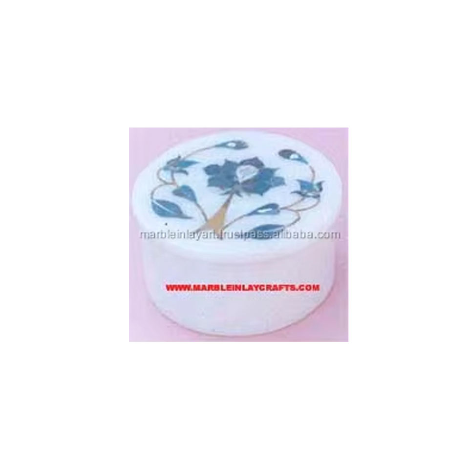 Caja de joyería con incrustaciones de mármol, redonda