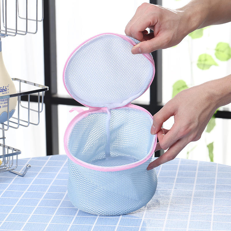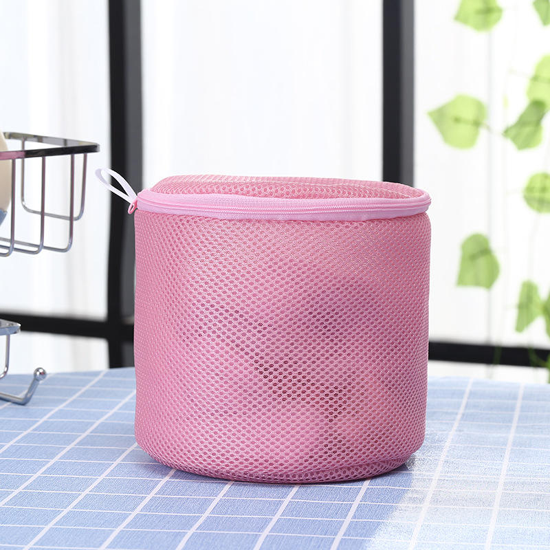 Bolsa de lavandería redonda de malla con cremallera, organizador de ropa de poliéster para uso en el baño