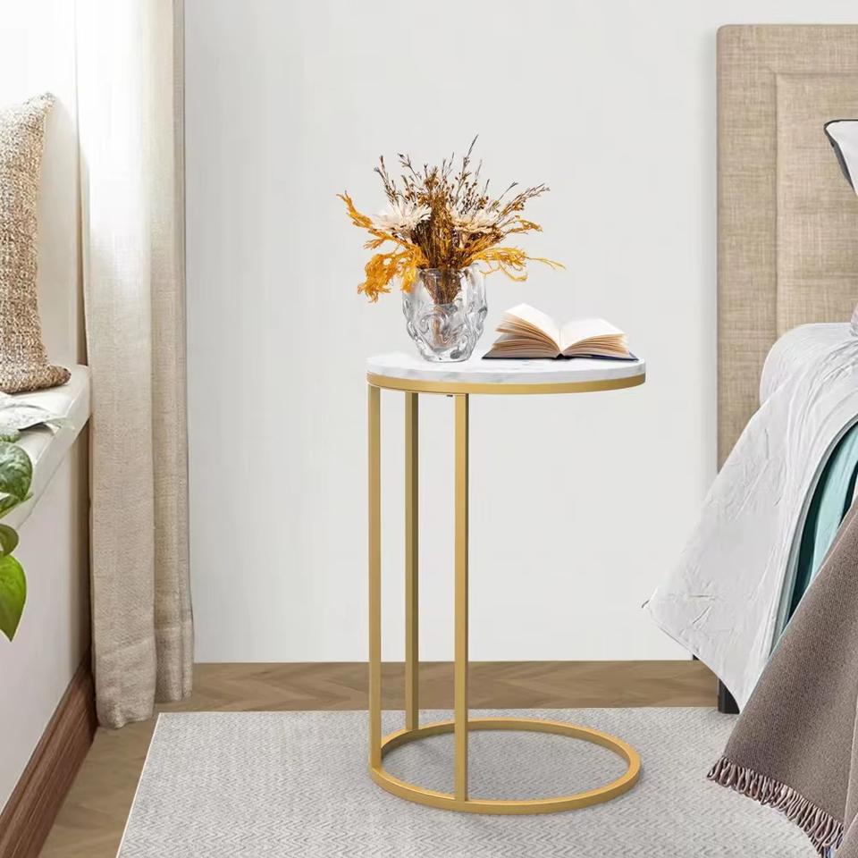 Mesa de Centro Redonda de Metal con Superficie de Piedra de Ágata Azul para Interiores Modernos, Artículos de Cocina, Artículos de Hotel