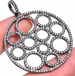 Collar con Colgante Redondo de Múltiples Círculos, Estilo Diamante CZ, Acabado en Rodio Negro, Collar de Diseño