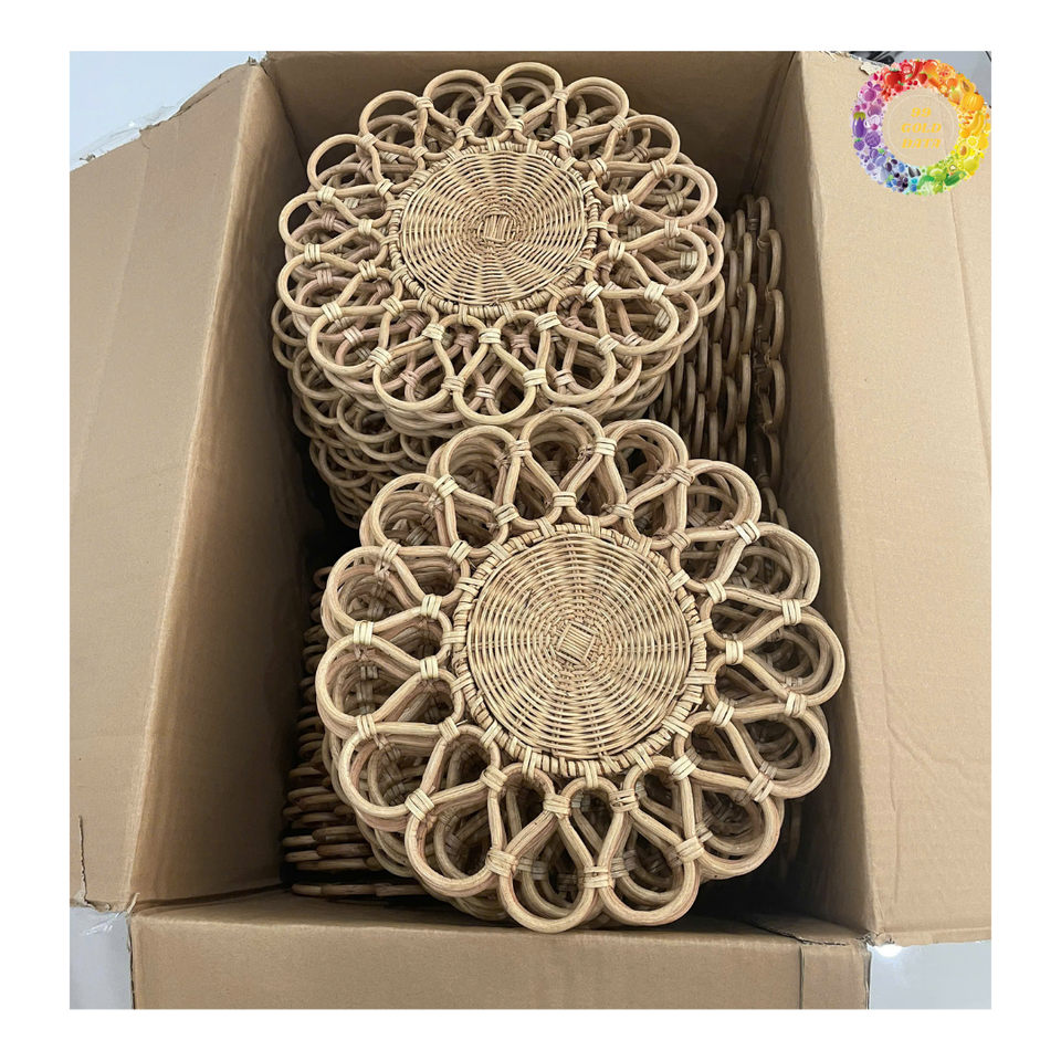 Mantel individual redondo de ratán natural, tapete de vajilla para decoración rústica, manteles individuales de ratán redondos hechos a mano, elegancia Bohemia para tu mesa