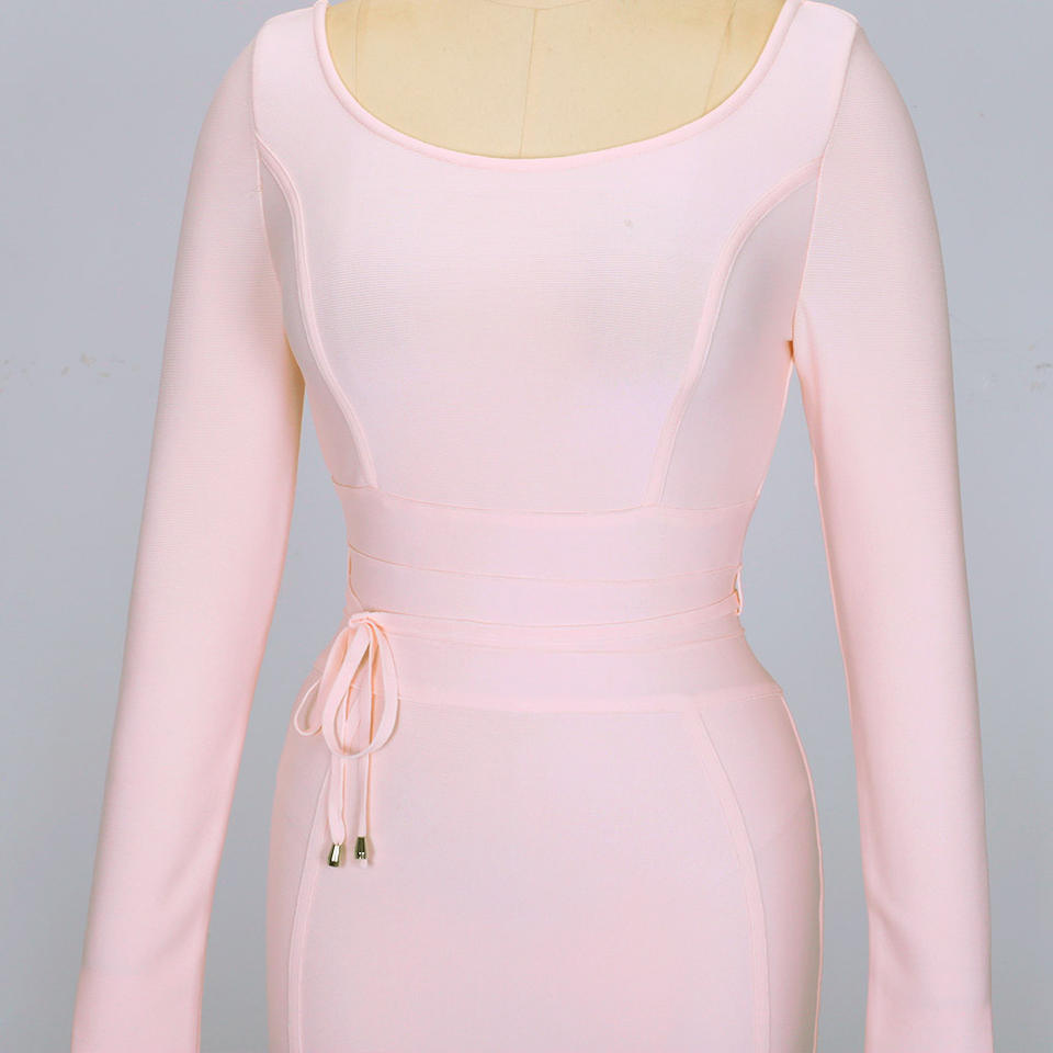 Detalles del embalaje:2 pcs of Round Neck Tie Waist Long Sleeve 2022 Christmas New Year Pink Bandage Dress Bodycon Women Sexy Party Dress Evening Outfits in a poly bag.