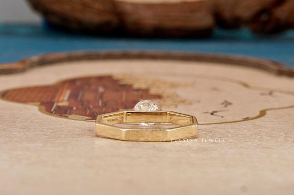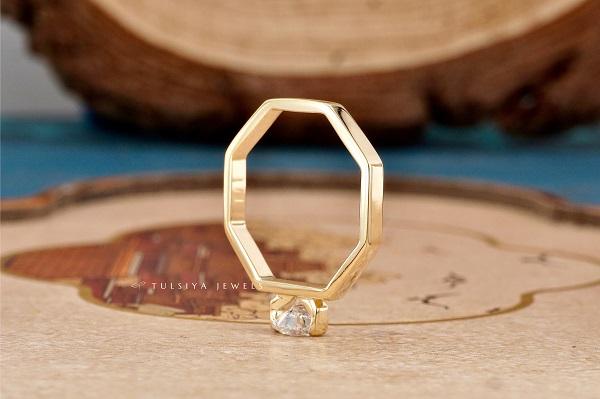 Anillo de mujer con engaste de bisel abierto redondo y forma hexagonal, diseño elegante y moderno con piedra preciosa brillante, perfecto para el día a día.