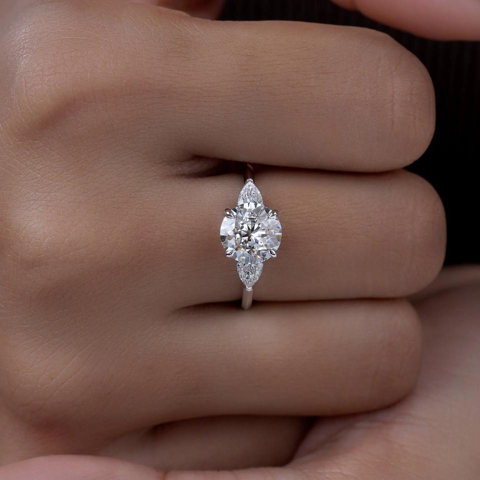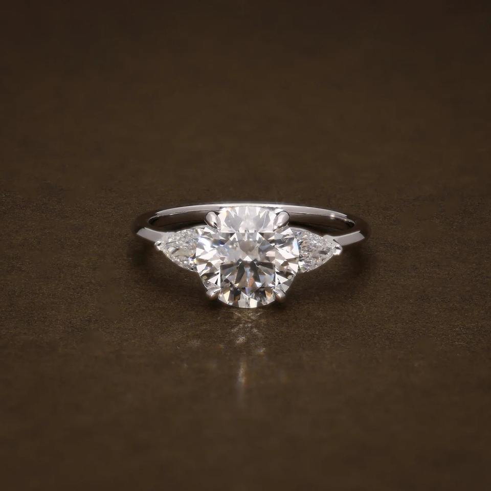 Anillo de Compromiso con Diamante Cultivado en Laboratorio, Corte Redondo y en Forma de Pera, 2.61 CTW, VVS, Certificado IGI, Anillo de Tres Piedras, Anillo Moderno, Anillo de Promesa