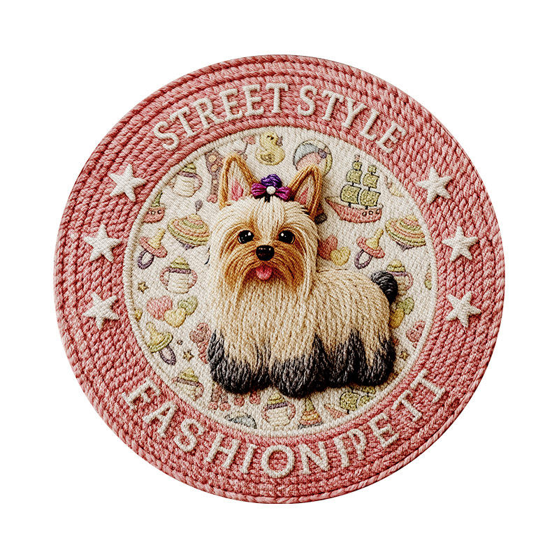 Alfombra para mascotas Sally de cáñamo con base de goma - Cachorro azul redondo