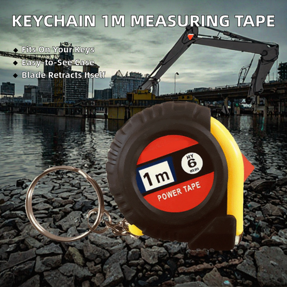 Cinta Métrica Redonda de Plástico con Llavero, Medidas Métricas, Hoja de Acero de 1m de Longitud, Retorno Automático, Carcasa de Alta Visibilidad