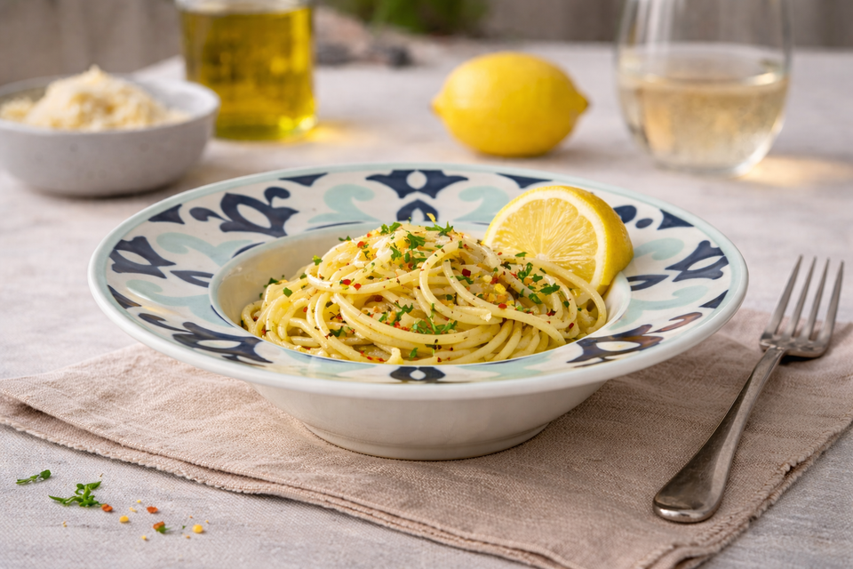Platos Redondos para Pasta, Juego de 6 Tazones de Cerámica con Decoración de Limón y Hojas, Diseño Italiano, Impresión Digital, Amalfi Excelsa