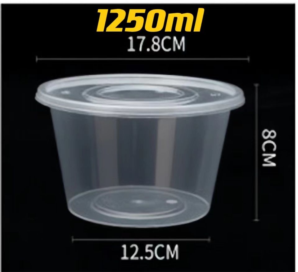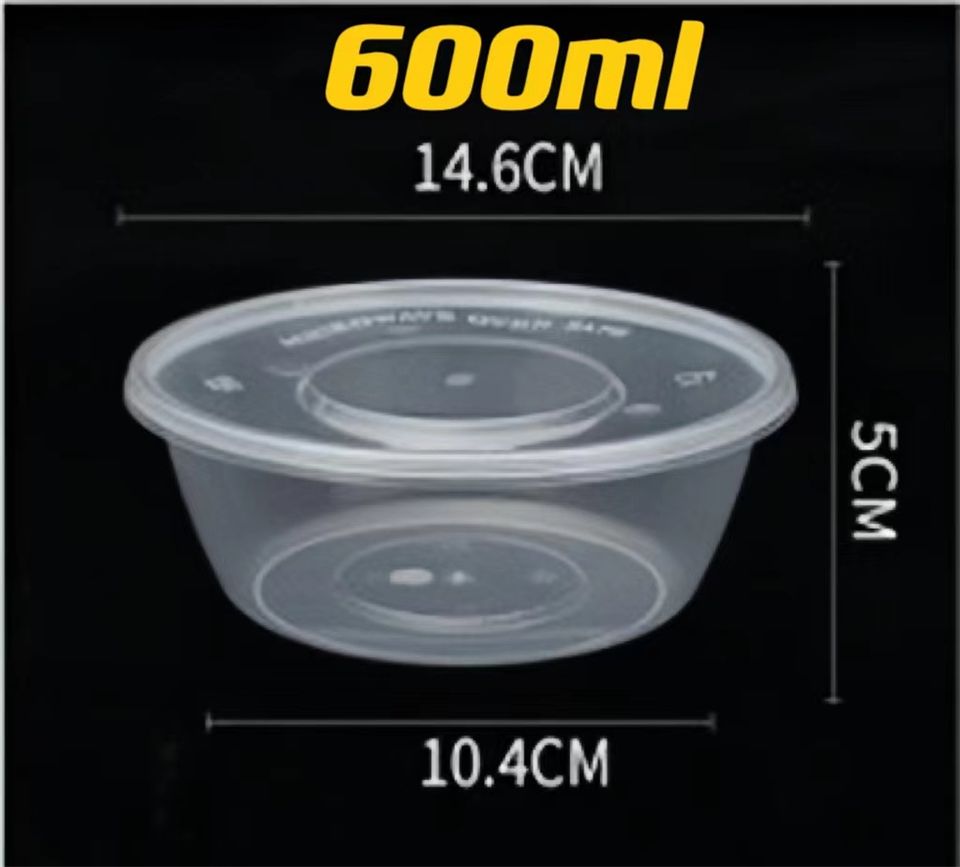 Contenedor redondo de plástico para alimentos de PP, contenedor de plástico para almacenamiento de alimentos, contenedor de plástico para alimentos para microondas