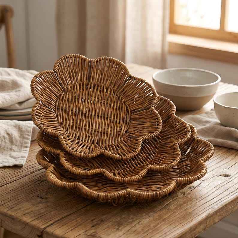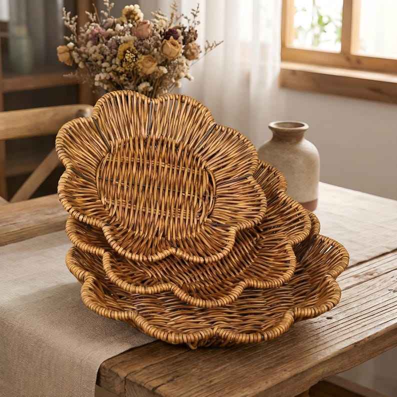 Cesta Redonda de Ratán con Asa y Tapa, Elegante Utensilio de Cocina para Almacenamiento de Alimentos, Excelente Precio, Diseño Elegante, Base Plana