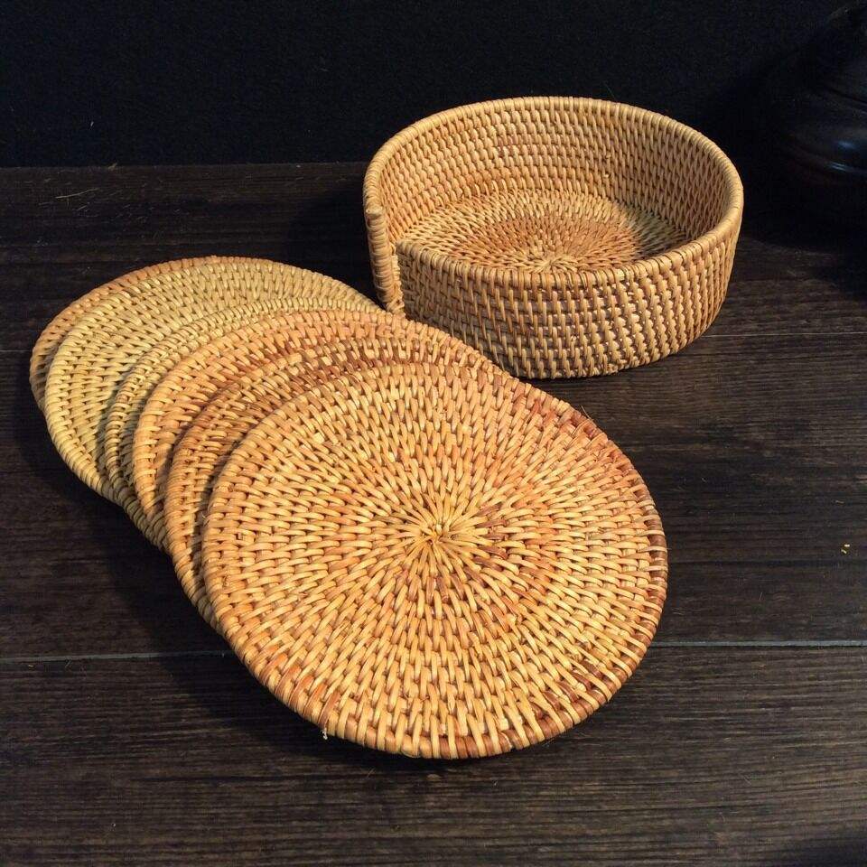 Manteles Individuales redondos de ratán, almohadillas calientes aisladas, soporte duradero para maceta para mesa