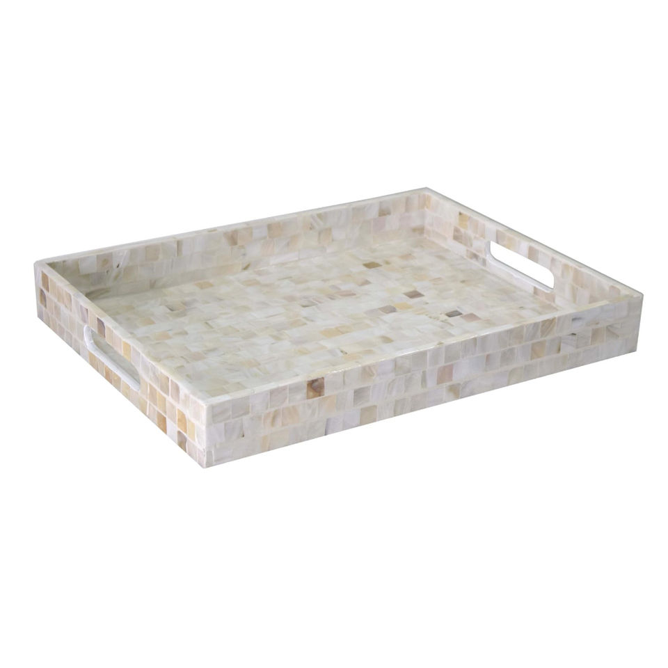 Bandeja Redonda de Ratán con Nácar, Cesta de Mimbre Tejida a Mano para Decoración de Mesa de Centro, Otomanas, Desayunos y Fiestas