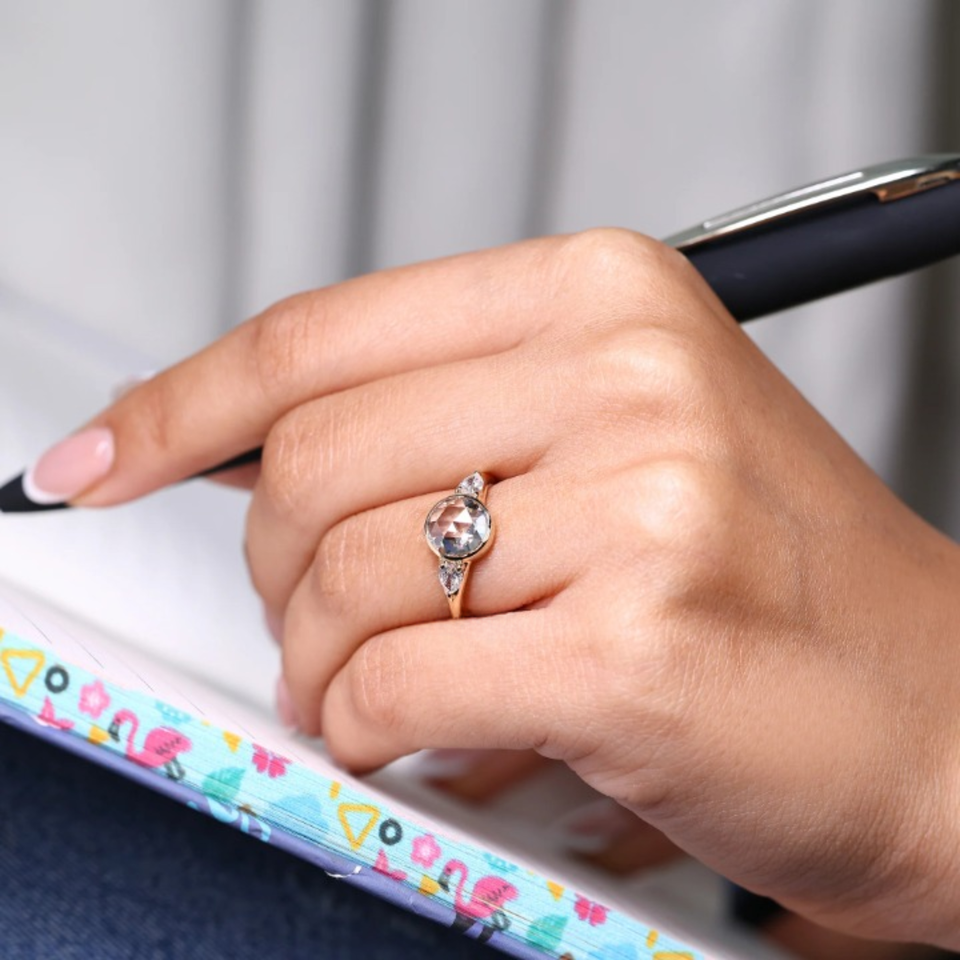 Anillo con Bisel de Corte Rosa Redondo, Anillo de Diamante Cultivado en Laboratorio de 1.78 Quilates, Anillo de Compromiso, Anillo de Boda, Joyería, Anillo de 14k
