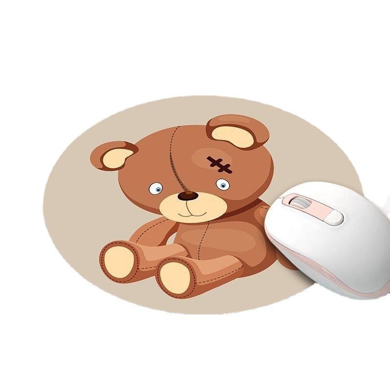 Round Rubber Mouse Pad Cute Cartoon Animal Design Office Desk Mat Natural Material Small Cushion